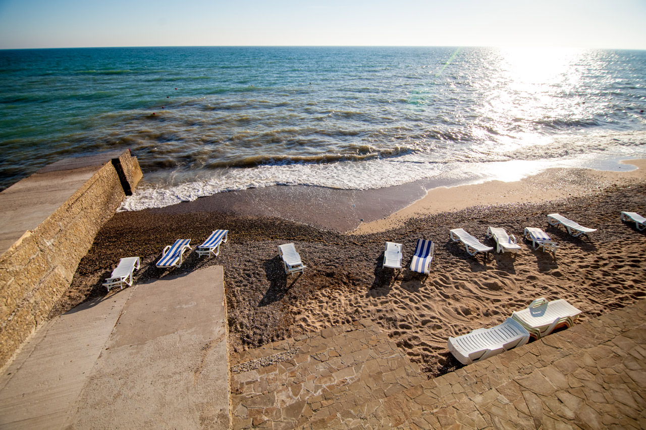 - Собственный песчано-галечный пляж на берегу Чёрного моря.