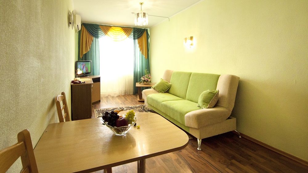 | Люкс-студия | 2 человека | 32 м² | Wi-Fi, ТВ, кондиционер, ванна/душ, биде, фен, чайник, мини-бар, сейф |